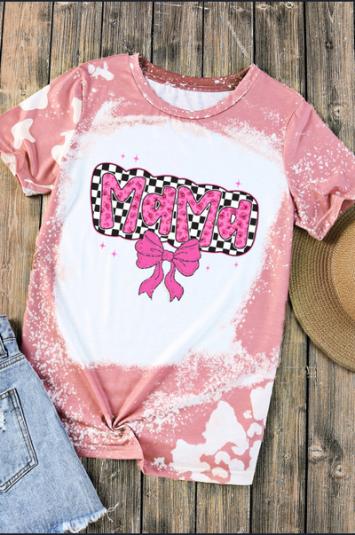 Pink checkered bow Mama graphic tie-dye T-shirt