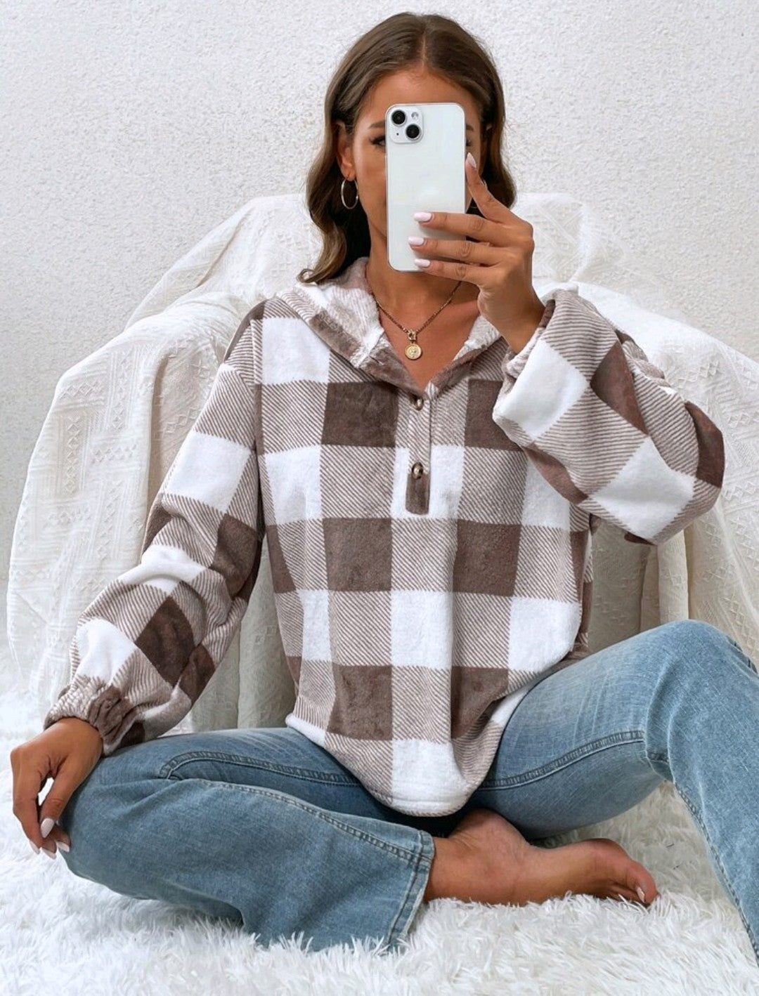 Stay cozy and stylish with our Brown & White Checkered Pullover! This versatile piece features a classic checkered pattern in warm brown and crisp white tones. Perfect for layering or wearing on its own, this pullover combines comfort with timeless autumn style.